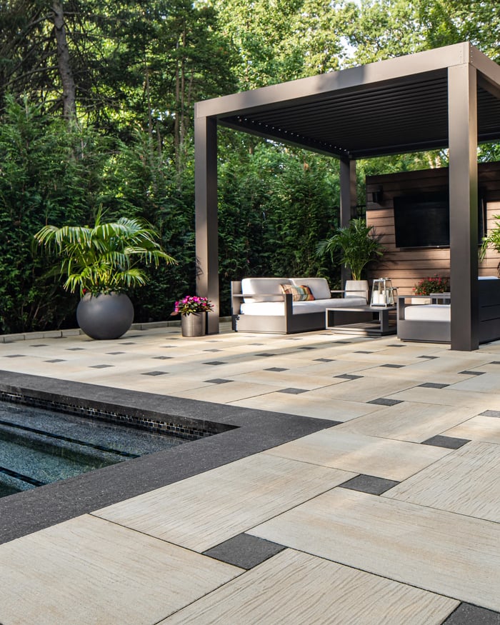 If you're looking for pool designs for backyards that feel upscale, these smooth-surfaced pavers are a game changer.