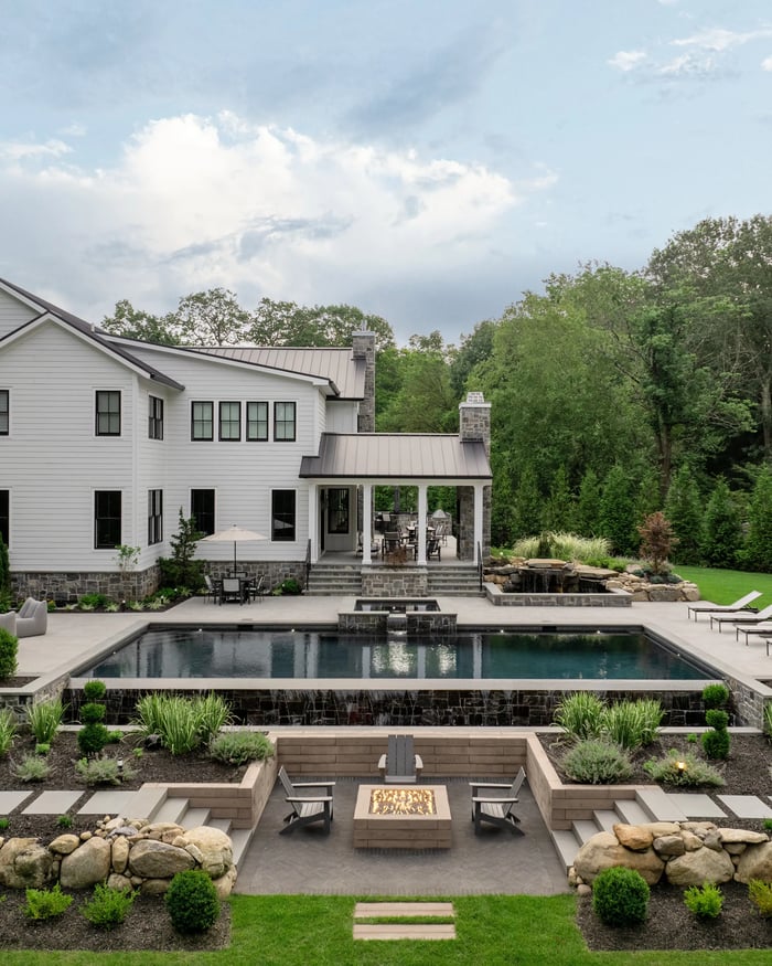Fire elements are one of the most popular backyard design ideas with pool—and for good reason.