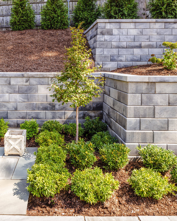 Create dimension in a small yard by building a tiered block retaining wall. The Mini-Creta Architectural collection lets you define plant beds at different levels, adding depth without clutter. It is also ideal for preventing soil erosion on gentle slopes.