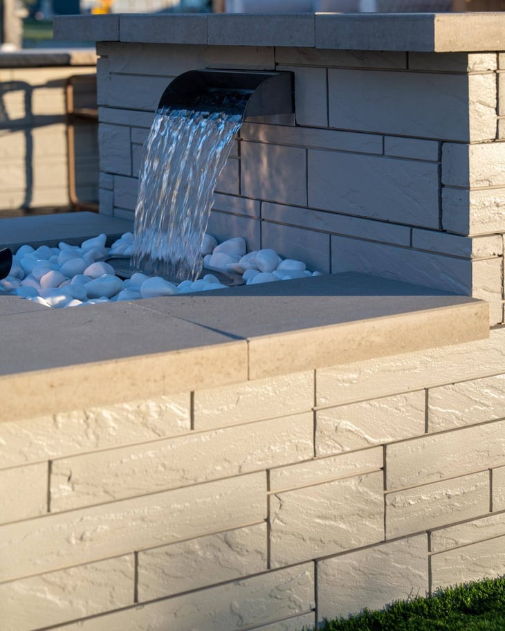 Add a peaceful touch to your outdoor space by pairing the Iconic Wall with a gentle water feature. As water flows softly over the wall’s textured surface, it creates a calming ambiance that brings spa-like serenity right into your backyard.