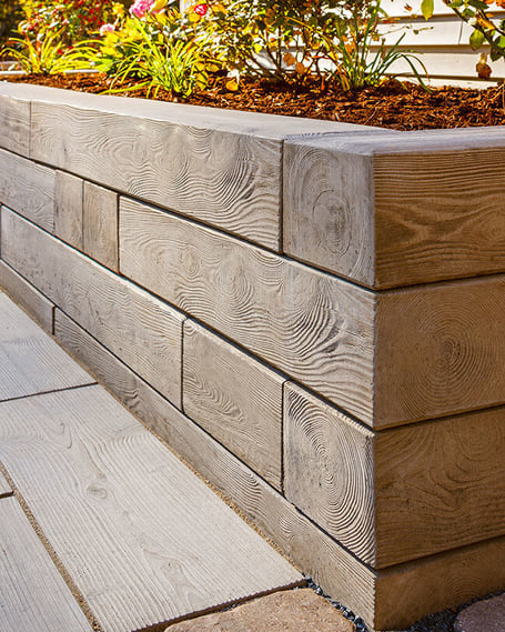 Wood edging brings a rustic charm to your garden. Techo-Bloc's Borealis edging replicates the look of wood without the maintenance issues, making it perfect for natural garden borders. These edges are resistant to rot and insect damage, providing a long-lasting solution that maintains its aesthetic appeal over time.