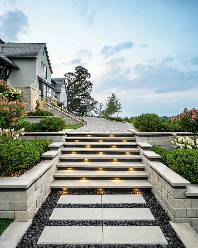 Absolutely. Add lighting along the path to improve both safety and ambiance. Solar lights, recessed LEDs, or integrated step lights are great landscape lighting options. Techo-Bloc’s Lighting solutions for pathways offers modern designs that elevate the mood.