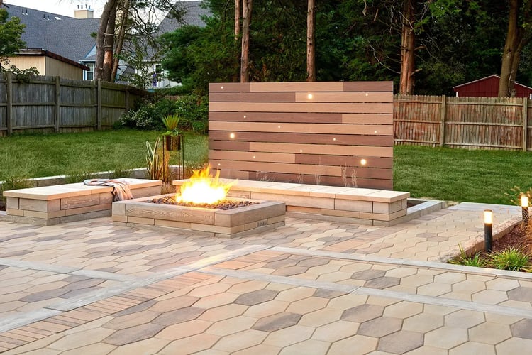Once your belly is full from all that barbecue, why not wind down by the fire and watch the sunset? Maybe even enjoy some roasted marshmallows for dessert! Adding an outdoor space design with a fire pit and comfortable seating area is a must when designing for the ultimate outdoor living experience. Add in a privacy wall to define the space with some integrated lights for a starry night feel and you're good to go! You can also define the outdoor event space by building custom seating with retaining wall stones that surround the fire pit.